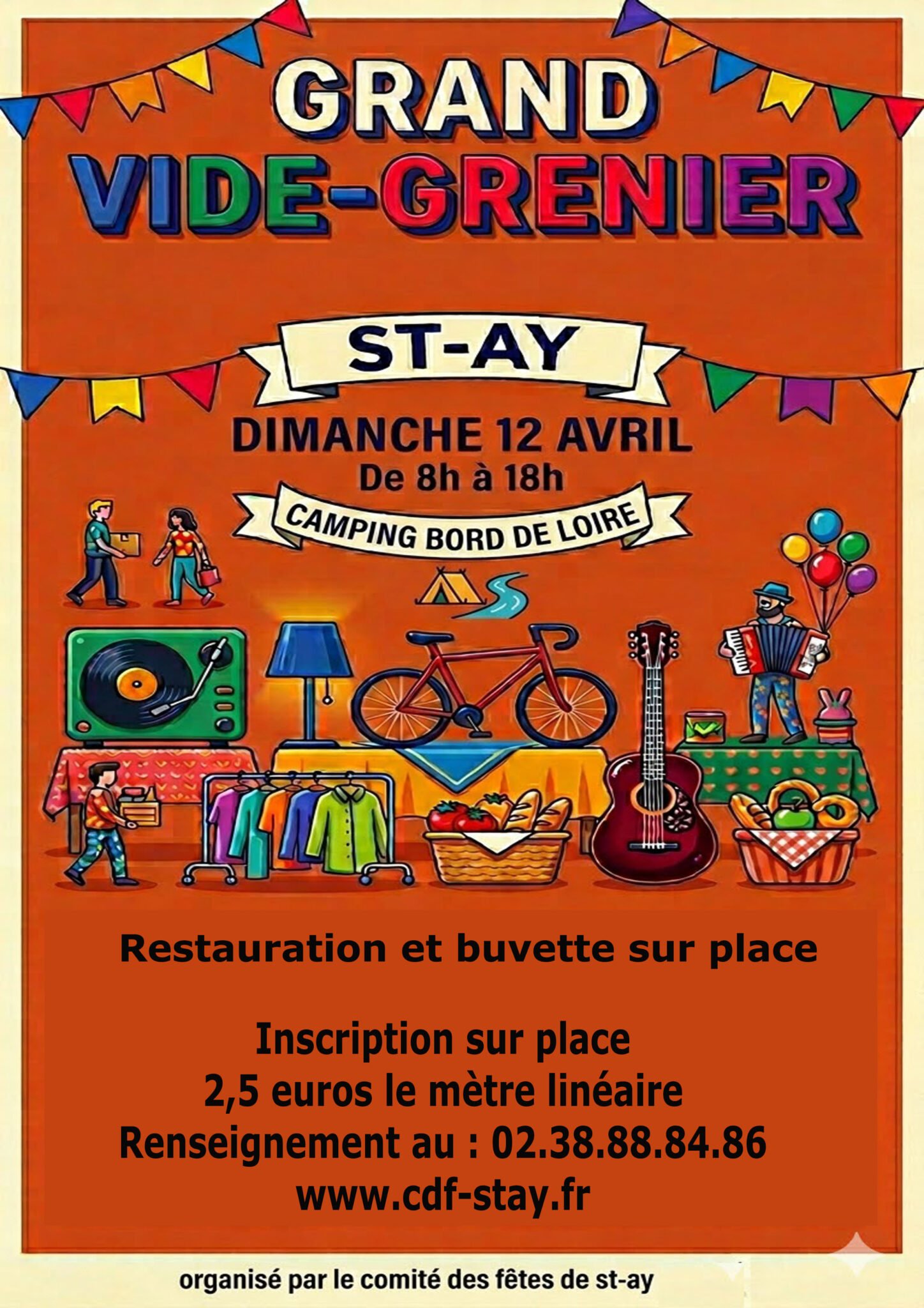 “Le comité des fêtes organise des manifestations et activités variées sur la commune de Saint-AY, en essayant toujours de satisfaire les goûts de l’ensemble de sa population et des communes environnantes et des visiteurs.